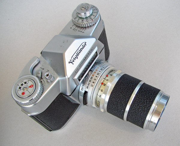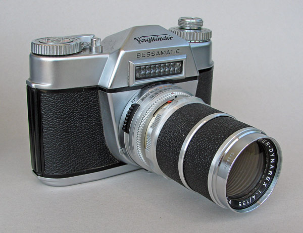 Um 1960 stellte Voigtländer über 200000 Bessamatic her. Hier mit 135er Tele und ohne den aufsteckbaren Blitzschuh.