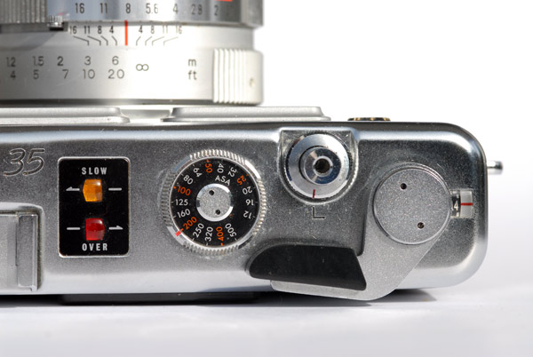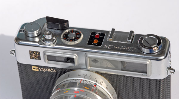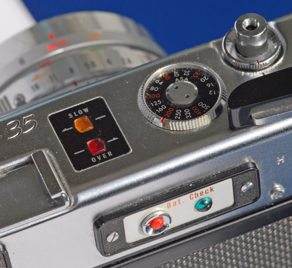 Warnlampen im Sucher und auf der Oberseite Yashica Electro 35 – ein Sucherkamera-Juwel mit Seltenheitswert (1966 - 1977) Ein