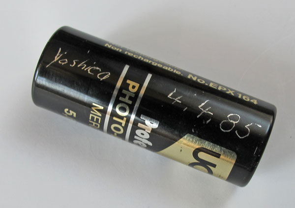 f/2.7, 37 mm / Copal 1/30 - 1/600, B 1965/66 Erstaunlich gross für das kleine Filmformat, schwer, "knubbelige Erscheinung", hervorstechendes Merkmal sind die um das Objektiv angeordneten Selenzellen; die Kamera ist äusserlich sehr gut erhalten, aber ... ... der schöne Schein trügt: der Belichtungsmesser zeigt immer die gleichen Werte an, der Verschluss lässt sich Zeit fürs Schliessen Zeit, zu viel Zeit. Das Sucher-Innere ist sehr ähnlich wie beim Vivitar 35EE, rote Balken zeigen Über- und Unterbelichtung an. Ein Mittenkontakt fehlt, das fehlende zweite Fenster verrät: auch ein Messucher ist nicht vorhanden. Angeblich sei dieses Modell das einzige von Yashica für den 126er Film Die Rückkwand wird nach linkgs geföffnet, der Filmaufzughebel ist unten angebracht, und weil der Schwung sehr kurz ist, ist das ungewohnt, aber gar nicht so ohne. Der Selbstauslöser funktioniert noch, und auch hier ist zu sehen: die Belederung ist in einem Topzustand.