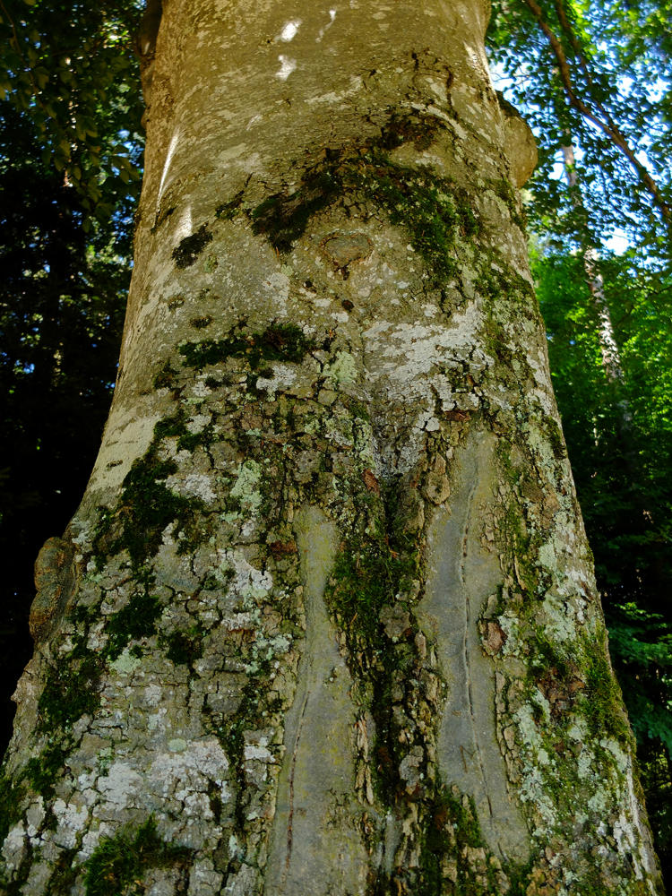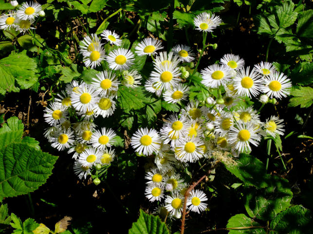 Geschundener Buchenstamm, Kanadisches Berufkraut, das sich neu verbreitet